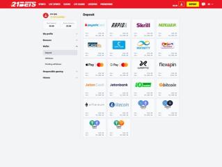 Das 21Bets Casino verfügt über einen separaten Bereich für Sportwetten mit vielen beliebten Sportereignissen, auf die die Spieler wetten können. Zudem kann auf E-Sports gewettet werden.