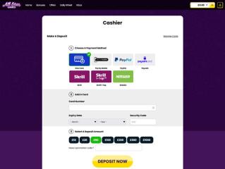 All Star Games ist kein herkömmliches Online Casino. Es erinnert teilweise an bestimmte Bingoseiten, die auch von Jumpman Gaming betrieben werden. Einige der Geschäftsbedingungen entsprechen nicht den normalen Standards und sollten entsprechend weit verbreiteten Normen angepasst werden. Die Freispiel-Angebote sind großzügig und es gibt immer wieder lohnende Promotion-Aktionen.