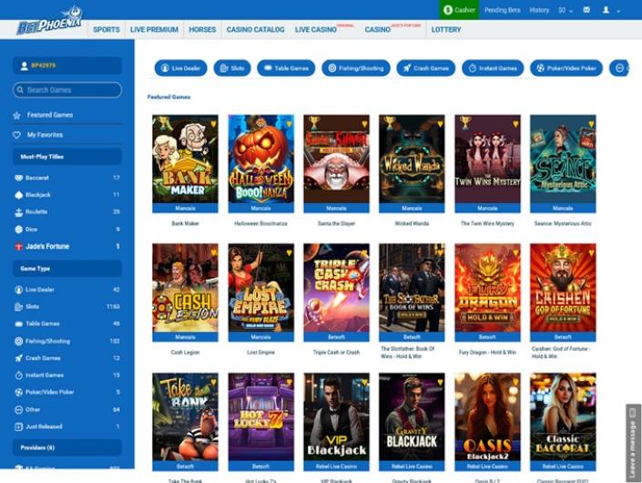 BetPhoenix Casino betreibt mehrere Glücksspielprodukte wie Sportsbook, Casino, Live Casino und auch Racebook. RTG-betriebene Casinospiele sind bekannt, aber seien Sie sich dieses Casinos bewusst, da mir die Gerichtsbarkeit von Costa Rica nicht sehr seriös und fair erscheint. Eine weitere schlimme Sache ist, dass alle Auszahlungen in etwa 2 Wochen bearbeitet werden, also müssen Sie Geduld haben, um Ihr Geld nach dem Gewinn zu bekommen. Nichts für mich, da ich ungeduldig bin und mein Geld innerhalb von maximal 2 Tagen haben möchte.