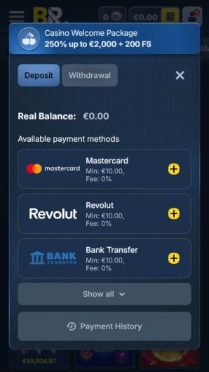 Banking services CashtoCode, NETELLER, Nordea, Paysafecard, Postepay, Rapid Transfer, Revolut, Siru Mobile, Skrill und Zimpler sind nicht verfügbar für Spieler aus Ohio