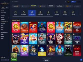Die Website des Bonanza City Casinos bietet einen dunklen Hintergrund und goldene Akzente für ein modernes und ansprechendes Spielerlebnis. Mit animierten Kacheln für die Slot-Spiele wirkt die Bibliothek dynamisch und lebendig und macht das Surfen zum Vergnügen.