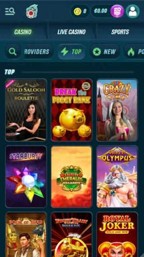 Direkt unter dem imposanten Werbebanner befindet sich die bunte Spielothek. Das Portfolio zeigt nur einige der beliebtesten Titel, also nutze die „Suchleiste“ zu deinem Vorteil.