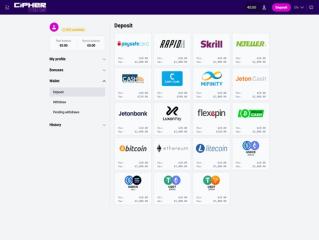 Das CipherWins Casino bietet verschiedene Zahlungsmethoden wie Banküberweisung, Astro Pay, Visa und MasterCard, um nur einige zu nennen, sowie Krypto-Optionen wie Bitcoin, Bitcoin Cash, Ethereum, Litecoin, Tether und USD Coin.
