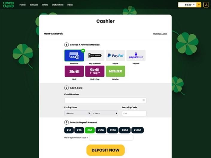 Ein Casino, das dem Glück ein bisschen auf die Sprünge hilft, kann doch nicht ganz so schlecht sein, oder? Das Clover Casino bietet nichts Außergewöhnliches, hat aber eine riesige Auswahl an Spielen, die von einigen der größten Namen der Softwarebranche betrieben werden. Hier gibt es nicht nur Spiele mit irischem Thema, sondern auch Titel rund um altägyptische und phantasievolle Inhalte, bei denen Skarabäuskäfer und Vampire großzügige Bonusse und lohnende Freispiele ergeben. Neue Spieler erhalten beider Anmeldung 20 Freispiele ohne Einzahlung , wenn sie sie ihre Handynummer bestätigen. Allerdings betragen die Umsatzbedingungen für die Gewinne 30x den Bonusbetrag. Die Navigation ist auch für uns erfahrene Casino-Spieler ein wenig kompliziert, da das Menü über eingeschränkte Optionen verfügt. Links zu Promotionen, AGBs und Kundensupport sind derzeit nicht enthalten, wir hoffen aber, dass diese auf bald folgen werden.