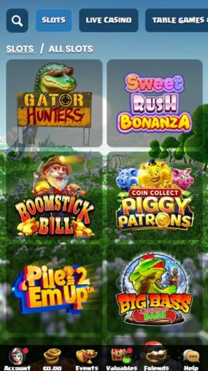 Spielautomaten Reel Rush, Mystery Joker, Dream Catcher, Rich Wilde and the Book of Dead, Jack and the Beanstalk, Jumanji, Jack Hammer, Mega Moolah, Twin Spin, Starburst, Gonzo's Quest, Viking Runecraft, Fire Joker, Creepy Carnival, Reactoonz, Sweet Alchemy, Gemix, Big Win Cat, Exotic Cats, Merry Xmas, Sizzling Spins, Moon Princess, House of Doom, Legacy of Egypt, Lady of Fortune, Hot Nudge, Sea Hunter, 7Sins und mehr.