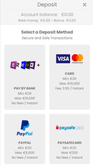Banking services AstroPay Card, CashtoCode, Citadel, Euteller, Flexepin, Giropay, iDebit, InstaDebit, Interac, MiFinity, MuchBetter, Neosurf, NETELLER, Pay N Play, Paysafecard, Payz, Rapid Transfer, Skrill, SOFORT Banking, Swish, Trustly und Zimpler sind nicht verfügbar für Spieler aus Ohio