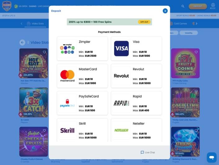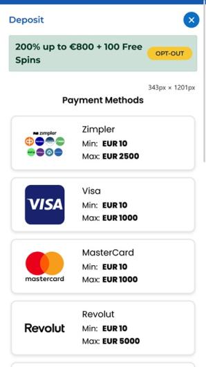 Banking services AstroPay Card, Interac, MiFinity, NETELLER, Nordea, Paysafecard, Payz, Rapid Transfer, Revolut, Skrill, Volt und Zimpler sind nicht verfügbar für Spieler aus Ohio