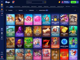Direkt auf der Startseite werden Dinge wie Megaways Slots, eine High-Roller-Auswahl, Multiplikatoren, Hold-and-Win-Titel und sogar ein kleinerer Bereich namens Nur bei Fugu hervorgehoben, der auf exklusive Spiele und Anbieter hinweist. Also ja, dieses Casino schafft es, sich nicht nur durch die Größe seiner Bibliothek, sondern auch durch Organisation und Präsentation hervorzuheben.