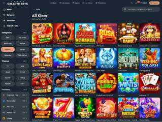 Es ist keine Übertreibung zu sagen, dass GalacticBets eine der am besten organisierten Spielelobbys überhaupt hat. Spieler können Inhalte nicht nur nach Softwareanbieter filtern, sondern auch verschiedene Kategorien (Jackpot, Bonus Buy usw.) und Themen durchstöbern – zum Beispiel Bücher, Früchte, Asien und sogar Fußball.