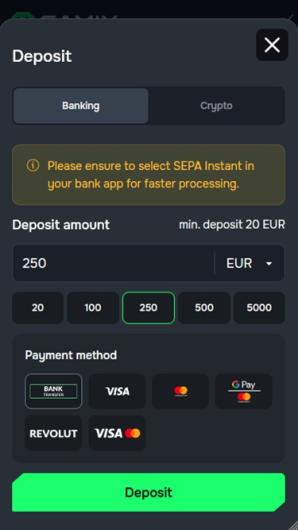 - Die Auszahlungslimits können je nach Treuestatus des Kunden erhöht werden.