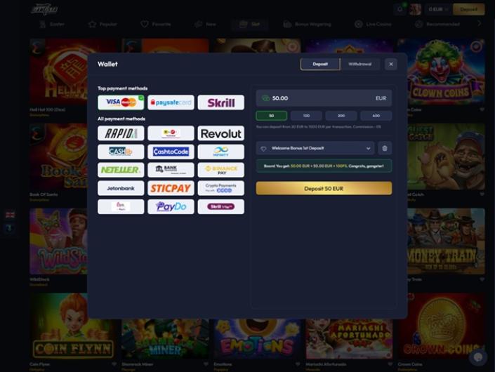 Slots – Money Train 4, Gates of Olympus 1000, Hoop King, Viking Runecraft 100, Dark Summoning, First of Olympians, Hercules 10k Ways, Tycoon: Billionaire Bucks, Razor Shark, Rich Wilde and the Tome of Madness, Release the Kraken 2…