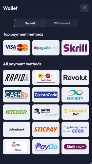 Banking services CASHlib, CashtoCode, eZeeWallet, Interac, Jeton, MiFinity, Neosurf, NETELLER, Paysafecard, Rapid Transfer, Revolut, Siru Mobile, Skrill und STICPAY sind nicht verfügbar für Spieler aus Ohio
