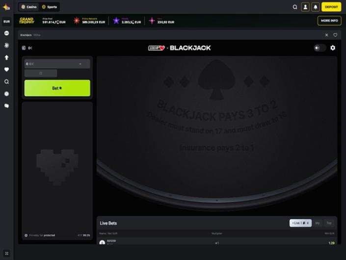 Sehr solides Kasino. Super schnelle Geldabhebung. Heute haben sie vier großartige Anbieter hinzugefügt. Punkte gegen Geld eintauschen. Wahl der Einzahlungswährung. Klares und schnelles Spiel. Ich verpasse die Gelegenheit, eine Einzahlung über Skrill zu tätigen.