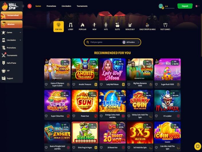 In der Spielelobby des HellSpin Casinos werden deine Spielwünsche schnellstmöglich erfüllt. Mit der übersichtlichen Suchleiste wird das Navigieren durch die umfangreiche Sammlung zum Kinderspiel. So entdeckst du deine Lieblingsspiele mit unvergleichlicher Leichtigkeit.