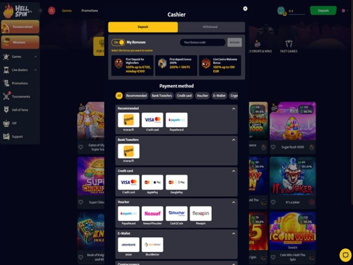 - Die interne Betriebswährung von HellSpin ist der Euro. Wenn du Transaktionen in einer anderen Währung durchführst, kann es aufgrund von Umrechnungen zu geringfügigen Unterschieden kommen.