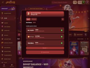 Ein einzigartiges Merkmal der Plattform ist die Bonuskrabbe, ein Automatenspiel, das Preise für Einzahlungen vergibt und auf der Aktionsseite vorgestellt wird. Außerdem können die Nutzer Reload-Boni verdienen und an Herausforderungen und Turnieren teilnehmen. Außerdem erhalten treue Kunden exklusive Belohnungen im Rahmen des Treueprogramms des Unternehmens.