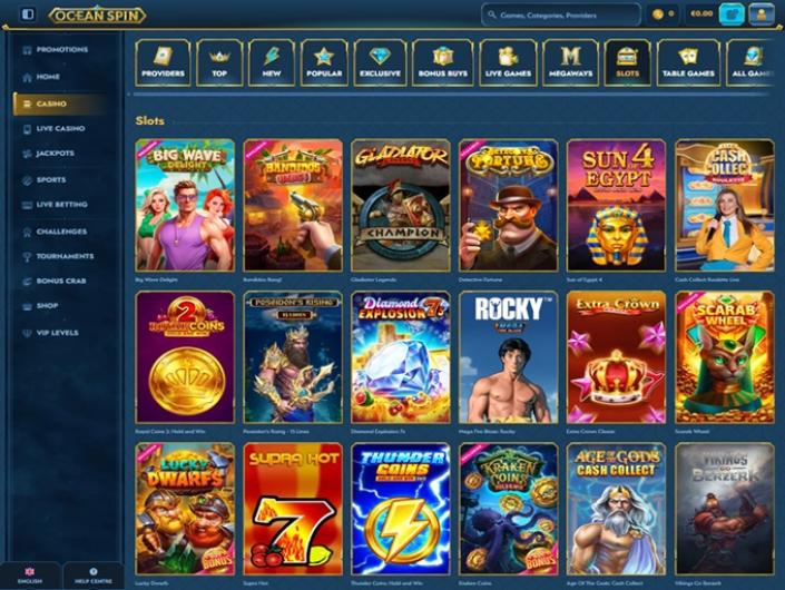 OceanSpins stellt eine mächtige Mischung aus Glücksspiel und Sportwetten dar, bei der sowohl Geschmäcker als auch Vorlieben an einem Ort befriedigt werden! Es ist unmöglich zu sagen, welchem Bereich mehr Aufmerksamkeit geschenkt wurde, denn beide sind umfangreich, vielseitig und haben definitiv das Zeug dazu, die Aufmerksamkeit auf sich zu ziehen. Beim Blick auf den Casino-Bereich werden Besucher des Casinos feststellen, dass es zahlreiche Spielgenres gibt, die von Slots bis hin zu Live-Casino-Spielen reichen, und jeder Spielbereich ist umfangreich und mit Titeln gefüllt.