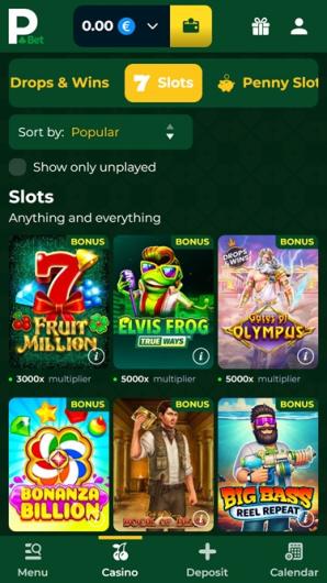 Es gibt klassische Slots und moderne Spiele mit Features wie Megaways, Drops & Wins und Penny Slots.