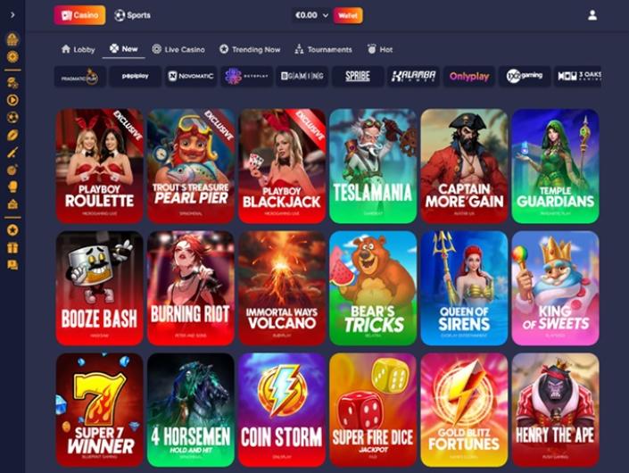 Namen wie 1x2 Gaming, BetSoft, Microgaming, Wazdan, Play'n Go, Endorphina, Pragmatic Play, Habanero und BGaming sind nur einige von vielen Namen, die in diesem bunten Spieleportfolio vertreten sind.