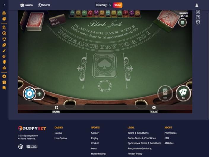 Wie der Name des Casinos, PuppyBet, schon andeutet, hat die Seite ein einprägsames Thema, das den besten Freund des Menschen bei verschiedenen Casino-Aktivitäten zeigt, und wir sollten die Grafikabteilung dafür loben.