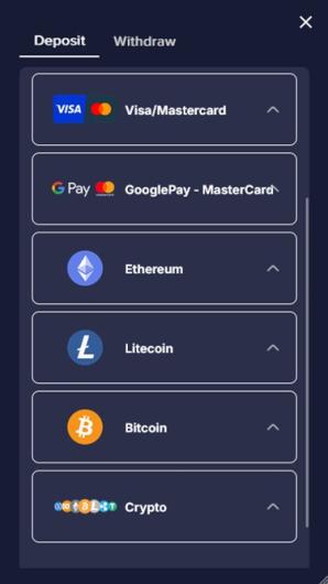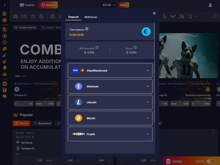 Das PuppyBet Casino bietet verschiedene Zahlungsmethoden wie Apple Pay, Banküberweisung, Visa und MasterCard, um nur einige zu nennen, sowie viele Krypto-Optionen wie Bitcoin, Bitcoin Cash, Dogecoin, Ethereum und Litecoin.