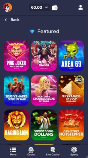 Wenn du dich vom Werbebanner nach unten bewegst, werden dir einige der beliebten Spieletitel aus dem Portfolio und einige andere Goodies vorgestellt, die das Casino zu bieten hat.