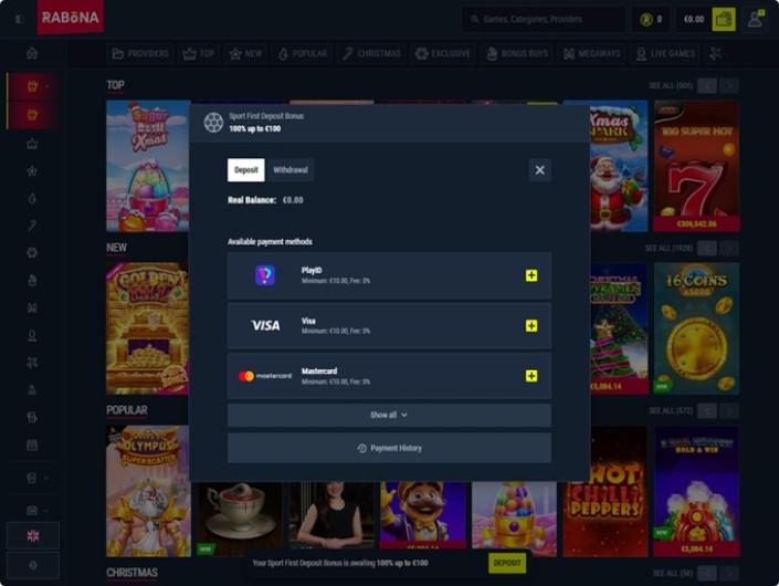 Das Rabona Casino ist ein ziemlich gutes Online-Casino, das viel zu bieten hat, wie z.B. eine riesige Sammlung von Spielen einschließlich Live-Angeboten, guten Promotionens, Boni, verschiedene Zahlungsmethoden und mehr...