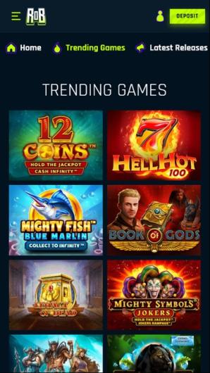 Wenn du vom sich ständig drehenden Werbebanner nach unten scrollst, stößt du auf eine farbenfrohe Spielbibliothek. Hier können Spieler einige der beliebtesten Titel durchstöbern, während die integrierte Suchleiste hilfreich sein kann, wenn du etwas Bestimmtes suchst.