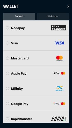 Banking services Boleto Bancario, CASHlib, CashtoCode, EPS, Euteller, Flexepin, Interac, Jeton, MiFinity, MuchBetter, Neosurf, NETELLER, Noda Pay, Paysafecard, Payz, Rapid Transfer, Skrill, SOFORT Banking und Trustly sind nicht verfügbar für Spieler aus Ohio
