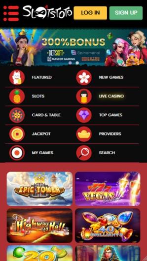 Slotstoto ist ein relativ kleines Online Casino, das von der Curacao Gaming Authority lizenziert und reguliert wird. Es arbeitet mit den besten Spieleanbietern zusammen, die eine Vielzahl von Slots, Live Dealer Spielen und anderen speziellen Angeboten wie Rubbelkarten, Jackpots und RNG Tischspielen anbieten. Die Geldgeschäfte werden über verschiedene Zahlungsmethoden abgewickelt. Du kannst Kredit- und Debitkarten, E-Wallets und Kryptowährungen verwenden. Denke daran, dass es einige Limits gibt, die du beachten solltest, wie unten im Abschnitt Einzahlung/Abhebung beschrieben.