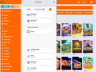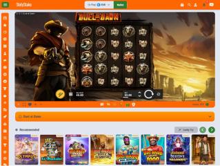 Was das Erscheinungsbild dieser Marke von vielen Konkurrenten unterscheidet, ist ihre farbenfrohe Oberfläche. Im Gegensatz zu den meisten Casinos, die einen dunklen Hintergrund verwenden, hat sich das SlotyStake Casino für eine leuchtende Farbkombination aus Orange und Weiß entschieden. Das Layout ist standardmäßig, das heißt, es gibt ein praktisches Menü auf der linken Seite, das die meisten wichtigen Verknüpfungen enthält. Die Homepage ist vollgepackt mit Informationen, aber ohne den Eindruck von Unordnung und Unordnung.
