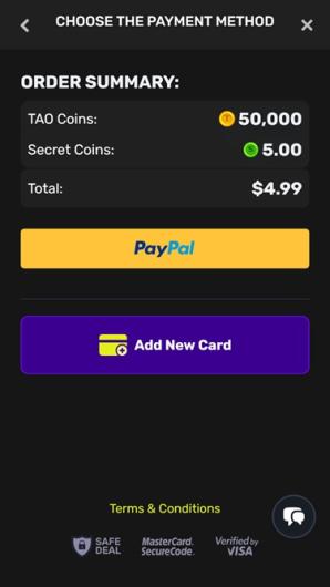 Für den Kauf von Münzen können Spieler nur VISA, Mastercard oder Discover-Karten verwenden. Käufe können nur von einem Bankkonto oder einer Bankkarte getätigt werden, die auf den Namen des Spielers ausgestellt sind.