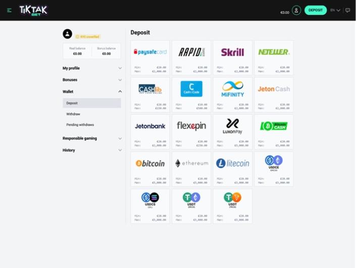 - Das Casino bietet sowohl Fiat- als auch Kryptowährungen an und akzeptiert zahlreiche Bankoptionen, darunter Skrill, Neteller, Jetonbank, Jeton Cash, paysafecard, MiFinity, flexepin, LuxonPay, Bitcoin, Bitcoin Cash, Ethereum, Litecoin, Tether und mehr.