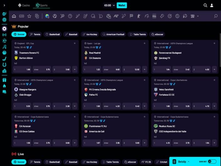 Auch Esports-Fans kommen mit Spielen wie Valorant, Counter-Strike, League of Legends, Dota 2 und Call of Duty auf ihre Kosten, während ein weiterer beeindruckender Bereich für Rennsportfans reserviert ist, mit Optionen wie Pferderennen, Windhundrennen und Trabrennen.