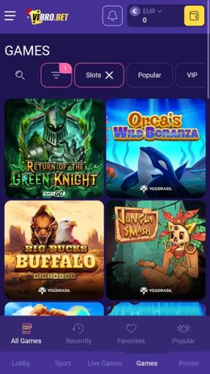 Der Begriff „Casino-Spiele“ hat sich seit seinen Anfängen stark erweitert. Wenn jemand das sagt, denken die Zuhörer vielleicht an verschiedene Dinge, manche denken an Slots, andere an Crash-Spiele. Was auch immer du magst, es erwartet dich hier im VibroBet Casino. Die Spielelobby reicht von Slots und schnellen Crash-Spielen bis hin zu Tischspielen und Lotterie.