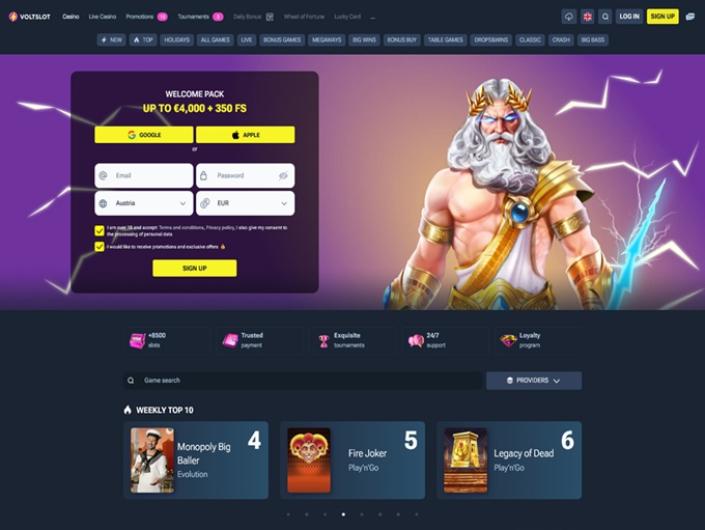 Zum Glück gibt es im Voltslot Casino keinen Platz für Langeweile. Die Seite bietet über 8.000 Spiele mit unterschiedlichen Themen, Features und Spielmechanismen an. Nur wenige Glücksspielseiten bieten auch nur annähernd eine so große Spielesammlung.