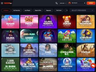 Wenn du von dem sich ständig drehenden Werbebanner nach unten scrollst, stößt du auf eine farbenfrohe Spielbibliothek, die nur einige der beliebtesten Titel anbietet, die derzeit zur Verfügung stehen.