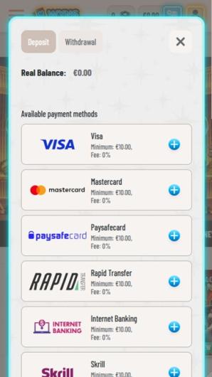 Banking services CashtoCode, Interac, MiFinity, Neosurf, NETELLER, Nordea, Paysafecard, Pix, Postepay, Rapid Transfer, Revolut, Siru Mobile, Skrill und Zimpler sind nicht verfügbar für Spieler aus Ohio