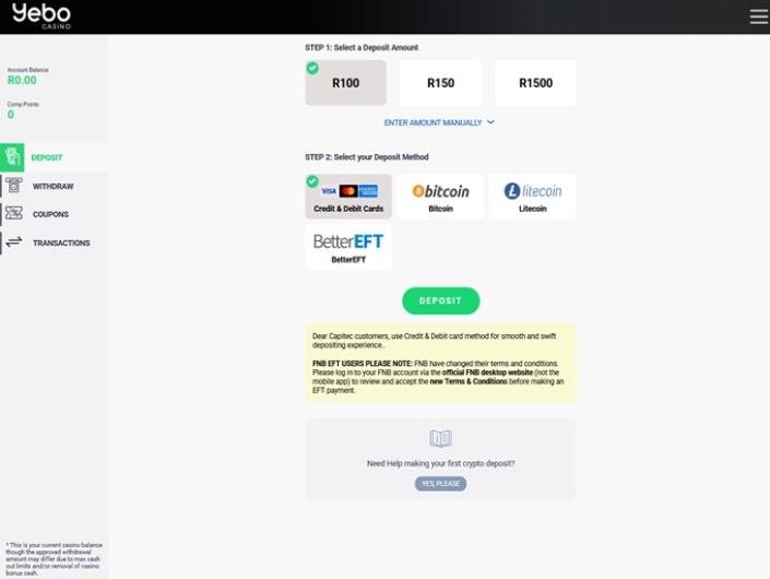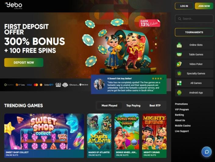 Yebo ist aber ok. Nicht so großzügig wie Springbok, selbst wenn Sie Einleger sind. Als ich das letzte Mal eingezahlt habe, habe ich mein Cashback nicht bekommen.