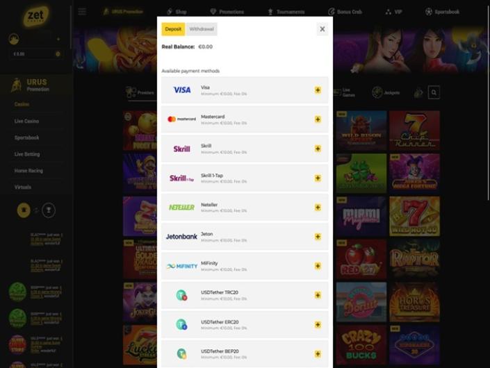 Zet Casino, das ich gespielt habe, sagen wir 50/50. Einige Sportwetten und einige Casino-Spiele. Ich mag die Tatsache, dass sie Live-Wetten für die beliebtesten Spiele eingeführt haben, und die Tatsache, dass ich dieses Geld sofort für das Casino verwenden konnte. Meine Einzahlungen waren genauso niedrig wie die Auszahlungen, verliefen aber ohne Probleme , Spiele, die früher Freispiele gaben, aber kein großer Gewinn erzielten die meisten Einnahmen aus Wetten, ziemlich gute Seite