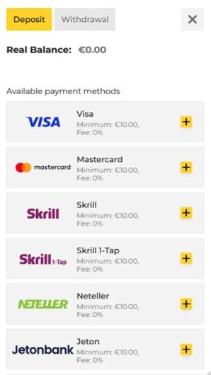 Banking services BLIK, Giropay, Interac, Jeton, Klarna, MiFinity, MuchBetter, NETELLER, Nordea, Pay N Play, Paysafecard, Payz, Piastrix, Rapid Transfer, Siru Mobile, Skrill und Trustly sind nicht verfügbar für Spieler aus Ohio