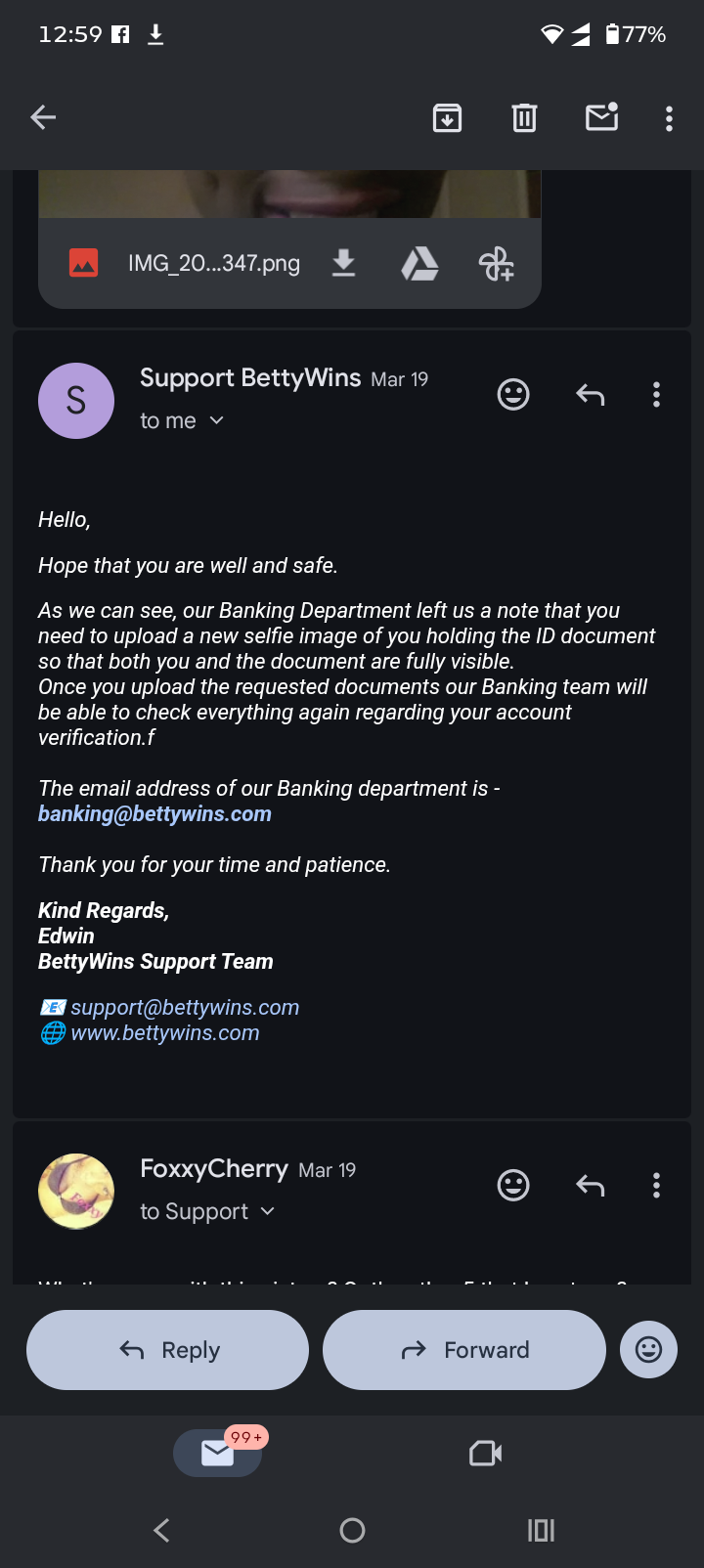 Ok I sent it, let's see them deny it again for some other made up reason. Everyone on this thread has a complaint about the KYC process at Bettywins. They don't even try to verify people it seems.