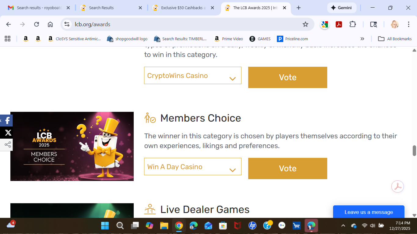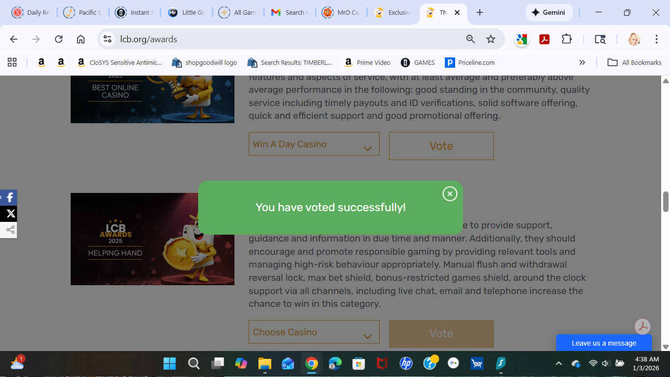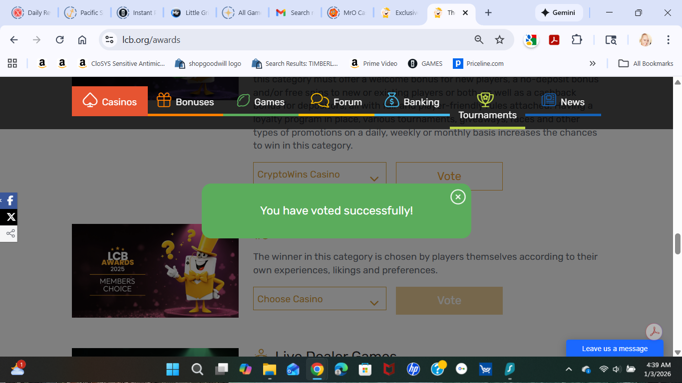 Prost! Ich habe für Cryptowins in der Kategorie „Prime Perks“ gestimmt.
