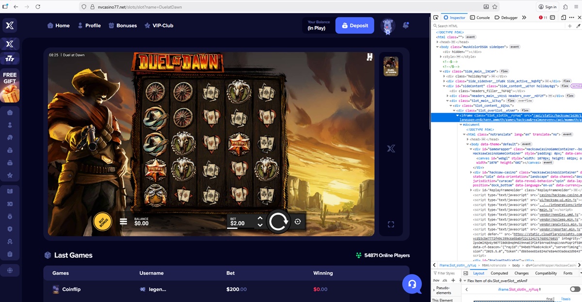 Beweis #2: Gefälschte Hacksaw Gaming-Spielquelle