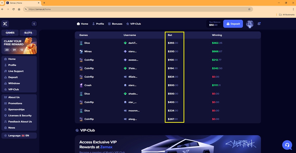 - In diesem Artikel zeigt die Website das Logo der SiGMA Awards Europe, um den Eindruck zu erwecken, zemax.at habe die Auszeichnung „Bestes Krypto-Casino 2025“ gewonnen.