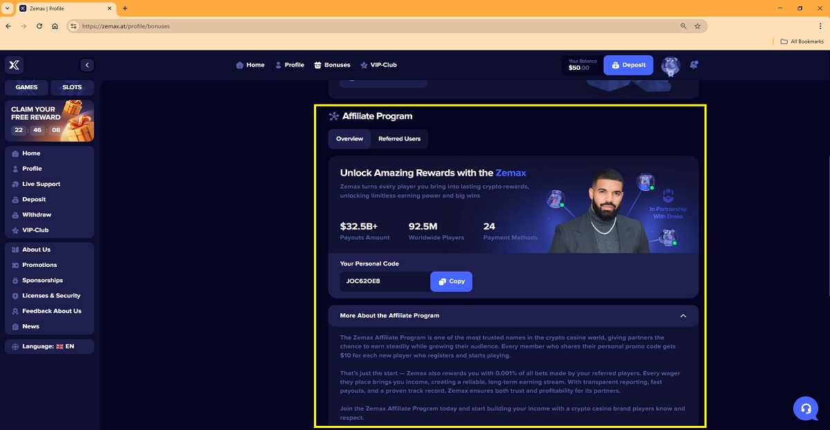 Based on the available public information, there is no verifiable evidence that a legitimate iGaming or crypto casino affiliate program operated under the name “Zemax Affiliate Program” currently exists. The claims describing a Zemax Affiliate Program — including guaranteed payments of $10 per registered player, ongoing earnings of 0.001% of all bets, and references to transparent accounting and fast payouts — cannot be substantiated through reliable or industry-recognized sources.