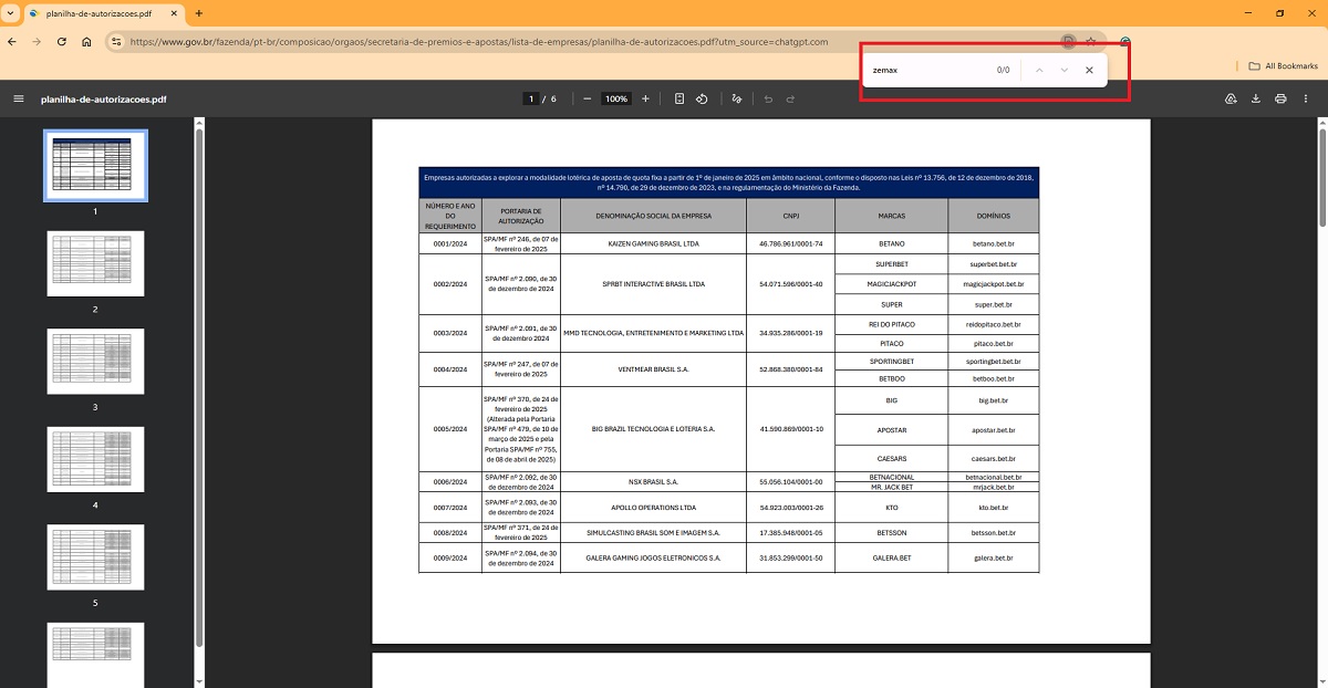 - Eine Überprüfung der offiziellen Regierungsliste der in Brasilien zugelassenen Wettanbieter zeigt, dass die Domain zemax.at nicht als zugelassener Anbieter aufgeführt ist.